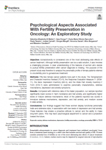 Psychological Aspects Associated With Fertility Preservation in Oncology: An Exploratory Study